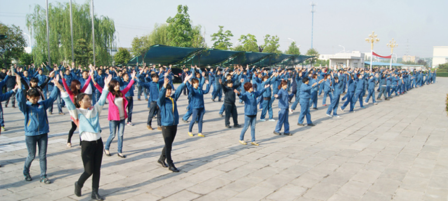 春光明媚,惠風和暢。在沃爾華辦公樓前廣場上,全體員工列隊整齊,身姿矯健,氣宇軒昂,形成了一道靚麗的風景線。