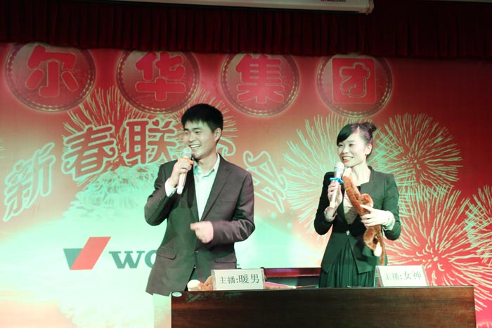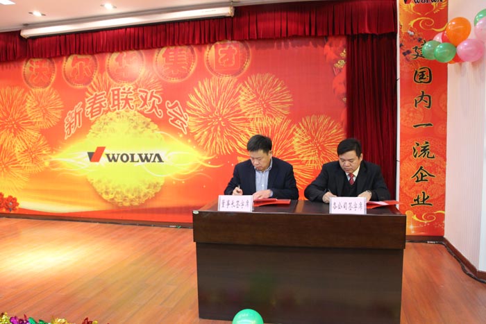 新年晚會由集團(tuán)財(cái)務(wù)總監(jiān)王總主持,在王勇先生妙語生花、溫文儒雅的主持下,在富有激情的音樂聲中,拉開了序幕。董事長楊總做了沃爾華集團(tuán)2015年度工作總結(jié)及2016年度工作規(guī)劃報(bào)告,并發(fā)表了熱情洋溢的新年致辭,祝愿大家新年愉快,猴年大吉、闔家幸福!隨后集團(tuán)各分公司--山東沃爾華工程機(jī)械有限公司總經(jīng)理張總、山東德立信液壓有限公司張總、山東沃爾華管業(yè)有限公司張總、沃爾華集團(tuán)電子商務(wù)部馮部長分別做了2015年度工作總結(jié)及2016年度工作規(guī)劃報(bào)告,并分別與集團(tuán)簽訂了2016年度經(jīng)營管理目標(biāo)責(zé)任書。