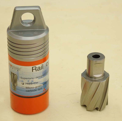 應(yīng)用:鋼軌鉆孔,每個(gè)鉆頭可以鉆鋼軌30-50個(gè)孔,并可反復(fù)磨3-5次。