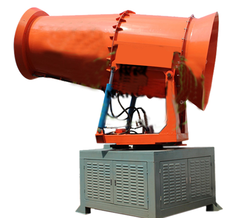 固定除塵噴霧機(jī)是根據(jù)風(fēng)送原理,先使用進(jìn)口高壓泵、微細(xì)霧化噴嘴將水霧化,再利用風(fēng)機(jī)風(fēng)量和風(fēng)壓將霧化后的水霧送到較遠(yuǎn)距離,使得水霧到達(dá)較遠(yuǎn)距離同時(shí)能夠覆蓋更大面積,水霧與粉塵凝結(jié)后降落,從而達(dá)到降塵目的。