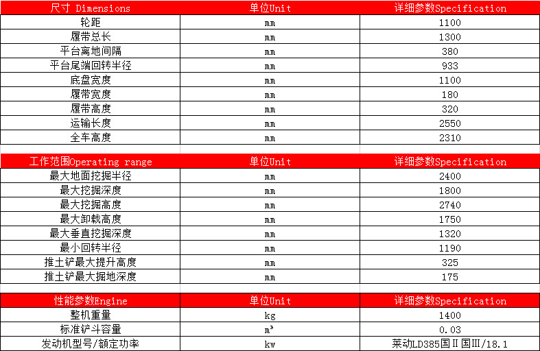 DLS18小型履帶挖掘機(jī)參數(shù)
