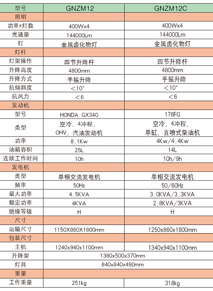 GNZM12   12C 手推式照明車參數(shù)