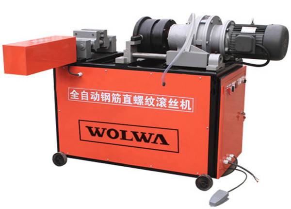 鋼筋直螺紋滾絲機是近年來廣泛用于建筑行業(yè)的一種鋼筋加工機械。它就把鋼筋端頭部位一次快速直接滾制使紋絲機頭部位產(chǎn)生冷性硬化,從而強度得到提高,使鋼筋絲頭達到與母材相同。由機架、夾緊機構(gòu)、進給拖板、減速機及滾絲頭、冷卻系統(tǒng)、電器系統(tǒng)組成。
