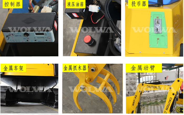 兒童抓木機(jī)是游樂(lè)設(shè)備的一種,是以電機(jī)為動(dòng)力,通過(guò)液壓泵控制單元把壓力分配到單個(gè)油缸的過(guò)程。主要由下底盤(pán)、上底盤(pán)、動(dòng)臂、斗桿、爪、動(dòng)力單元、控制單元、回轉(zhuǎn)支承、回轉(zhuǎn)馬達(dá)、液壓油缸、電子輔助控制系統(tǒng)組成,運(yùn)行速度較慢,可控性強(qiáng)是一款高仿真抓木機(jī)。