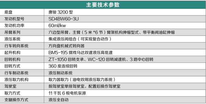 沃爾華GNQY-3200型微型吊車自制吊車專用底盤,濰柴4102大功率發(fā)動(dòng)機(jī)動(dòng)力強(qiáng)勁,行車帶液壓助力式方向機(jī)、斷氣剎制動(dòng)系統(tǒng)、帶有中心回轉(zhuǎn)器可實(shí)現(xiàn)360度無限度連續(xù)旋轉(zhuǎn),50錳鍛打燧火軌道加工回轉(zhuǎn)支承,轉(zhuǎn)向采用可靠耐用的吊車專用行星減速機(jī),沃爾華五邊型吊臂專利技術(shù),全液壓伸縮式支腿,大跨度幅式H字型支腿大架,起升雙速度設(shè)計(jì),主卷揚(yáng)采用8噸液壓絞車(軸向柱塞馬達(dá))、副鉤采用沃爾華專利高低速常閉式卷揚(yáng)機(jī)(支持快速放繩),液壓系統(tǒng)采用伺服控制(可實(shí)現(xiàn)多項(xiàng)復(fù)合操作),流線型駕駛室,國(guó)際行業(yè)低價(jià)位??砂惭b電機(jī)泵站,直接以380V電源作動(dòng)力,節(jié)約環(huán)保。產(chǎn)品輕便靈活,價(jià)位低廉,適用于農(nóng)村及城鄉(xiāng)結(jié)合部工作。低價(jià)位投資,高檔產(chǎn)品回報(bào)。為了降低客戶的風(fēng)險(xiǎn),公司還隨車給每臺(tái)產(chǎn)品在中國(guó)人壽財(cái)產(chǎn)股份有限公司入了一年的與產(chǎn)品同價(jià)值質(zhì)量責(zé)任保險(xiǎn),客戶可更放心使用。